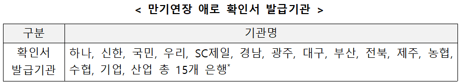 - 2. 은행권 대출 중 만기연장 어려운 은행에서 "만기연장 애로 확인서"를 발급해 준 경우
