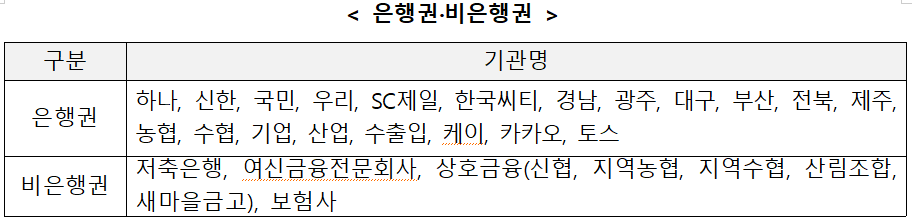 - 1. 은행권. 비은행권 7% 이상 고금리 대출인 경우