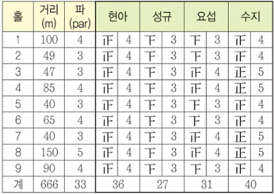 6. 스코어 기록은 첨부자료를 참고하시고 좀 더 자세한 내용은 골프파크협회 홈페이지를 참고하시면 됩니다.